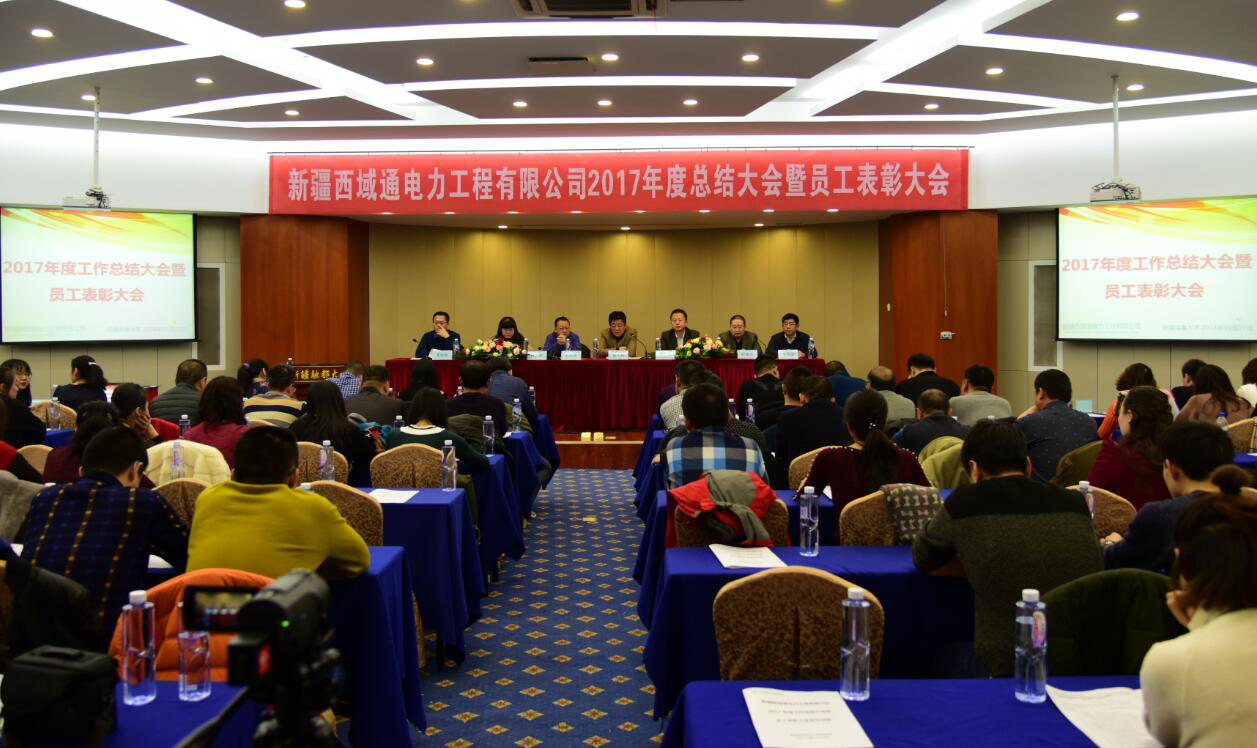 2018年1月20日下午,新疆西域通電力工程有限公2017年度工作總結(jié)大會(huì)暨員工表彰大會(huì)在新疆融都大...